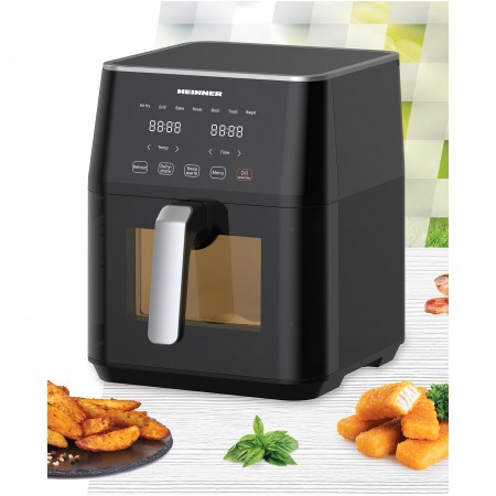 Ai posibilitatea sa urmaresti procesul de gatire cu aer cald, si poti decide singur daca preparatul este gata. In plus, compartimentul interior este iluminat, pentru o vizibilitate optima in timpul utilizarii.