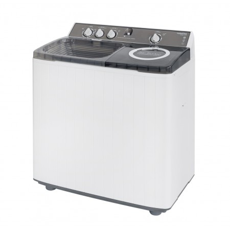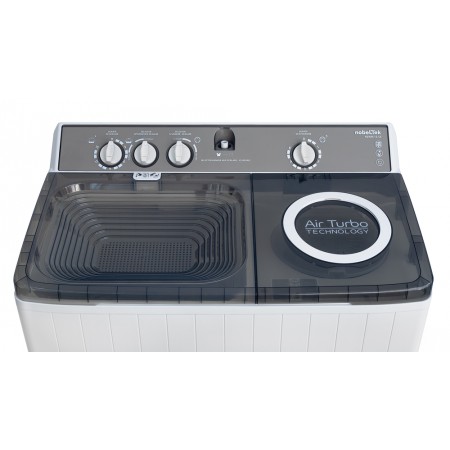 Masina de spalat rufe semi-automata Nobeltek, 10 kg spalare, 5 kg stoarecere, 420W spalare, 190W stoarcere, timp spalare 0-15 min, timp stoarcere 0-5 min, evacuare apa uzata: prin cadere libera, culoare corp Alb, capac Silver